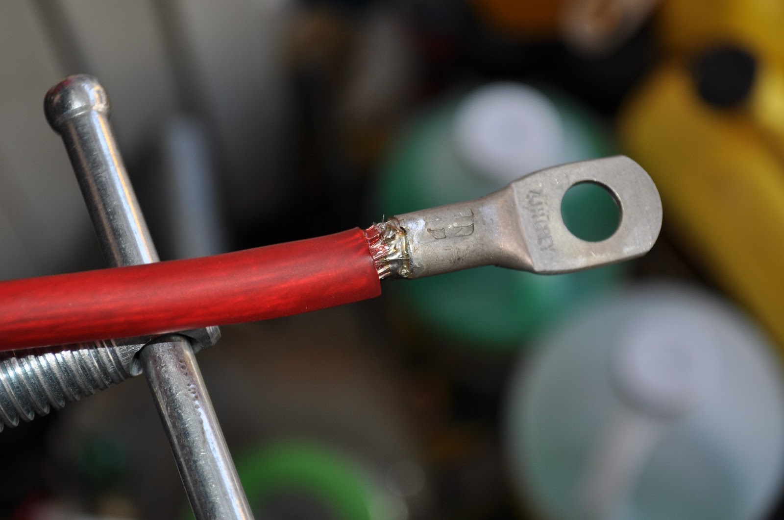 Akü kutup başının lehimleme tekniği.  Sıkıştırma da yok üstelik.
